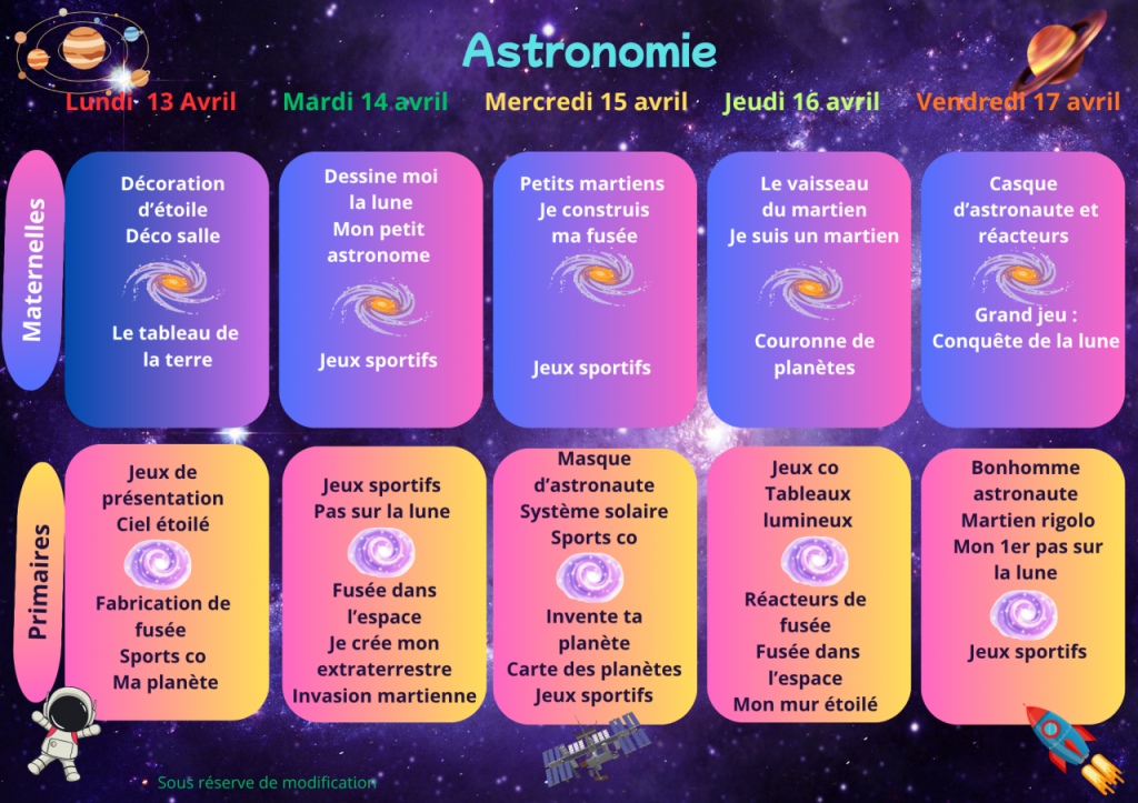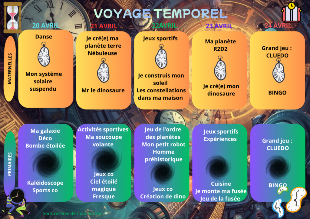 Activités pour les vacances de printemps 2026 :