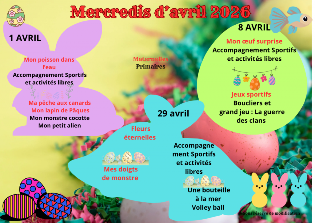 Activités pour le mois d'avril 2026 :