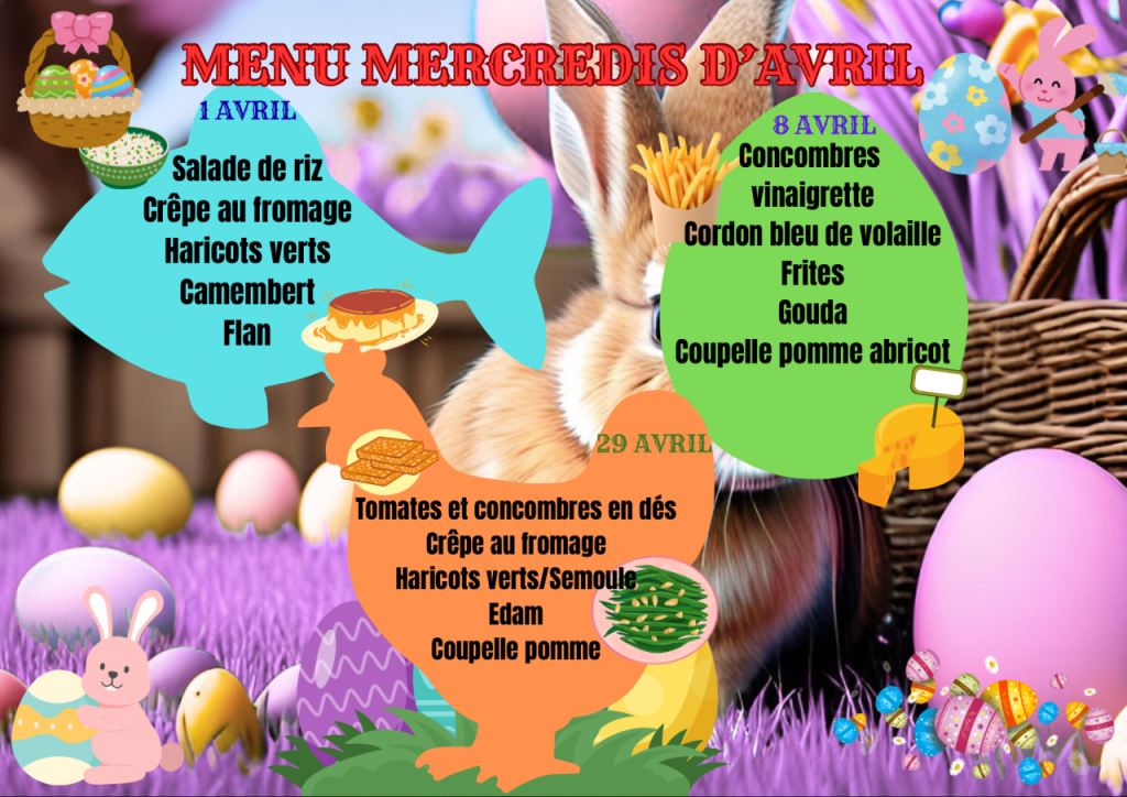 Menus pour le mois d'avril 2026 :
